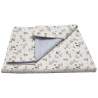 Por un lado tejido estampado o tejido de piqué y por el otro en tejido blanco impermeable de fácil limpieza. Puedes limpiar con paño húmedo y cuando necesites puedes lavar en lavadora.