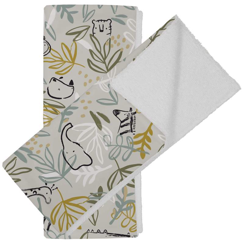 Por un lado, tejido villela estampada a juego con tu capazo y por el otro lado en rizo de algodón.