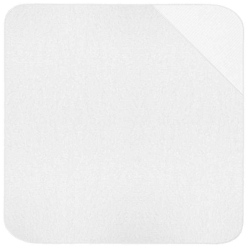 2*Capa de baño grande: medidas 110x100 cms En una esquina sistema de sujeción, para que puedas colocar la toalla alrededor de tu cuello y así tener las manos libres para coger a tu bebé con tranquilidad.