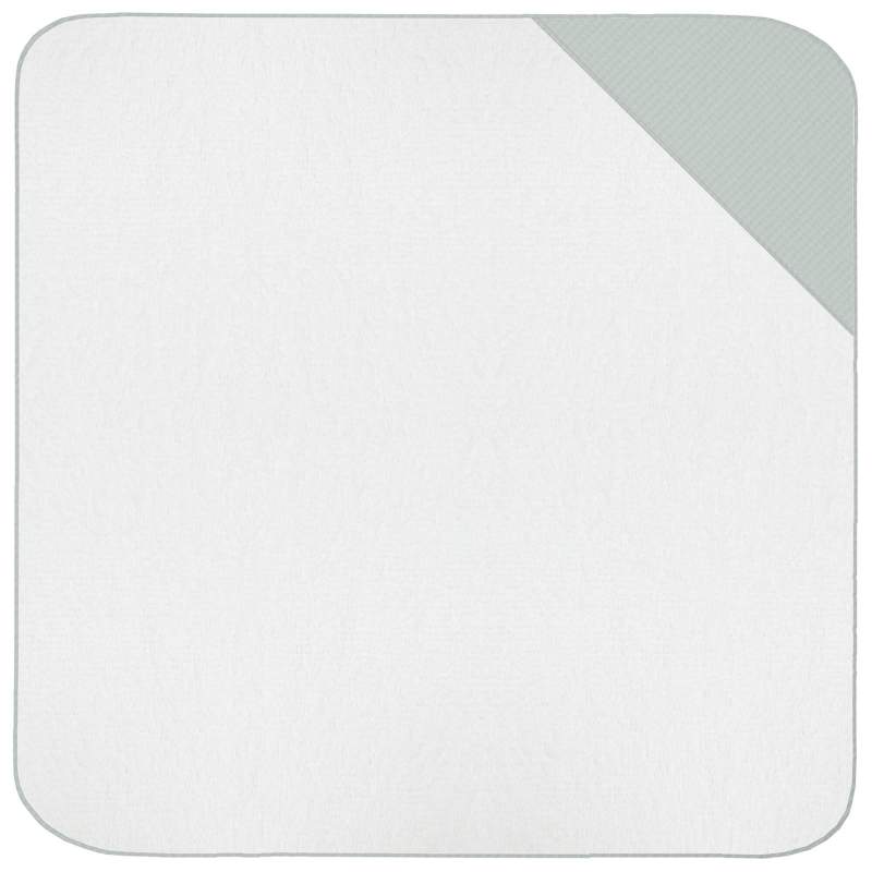 2*Capa de baño grande: medidas 110x100 cms En una esquina sistema de sujeción, para que puedas colocar la toalla alrededor de tu cuello y así tener las manos libres para coger a tu bebé con tranquilidad.