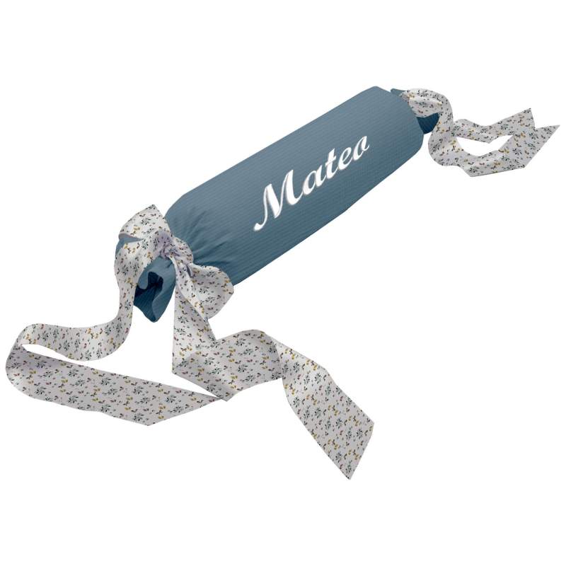 El color del bordado será un tono que vaya a juego con el color del cojín y el tono de los lazos