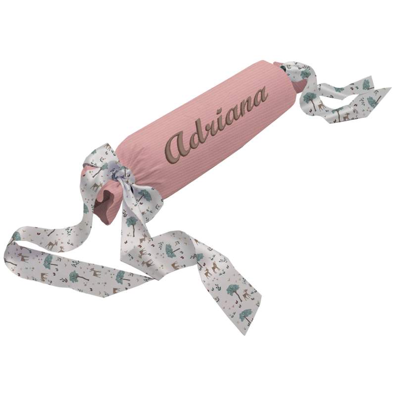 El color del bordado será un tono que vaya a juego con el color del cojín y el tono de los lazos