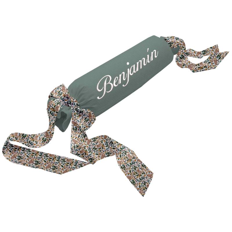 El color del bordado será un tono que vaya a juego con el color del cojín y el tono de los lazos