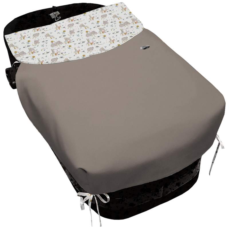 -Colcha ajustada al capazo mediante cinturón o ajustada mediante lazos, en tejido polipiel.